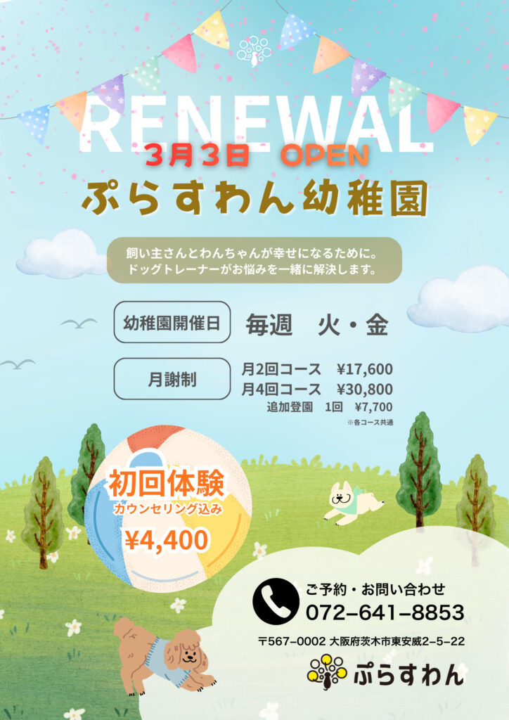 茨木市のドッグラン・トリミングサロン・ペットホテル・しつけ教室・ペット用品のことなら「ぷらすわん」